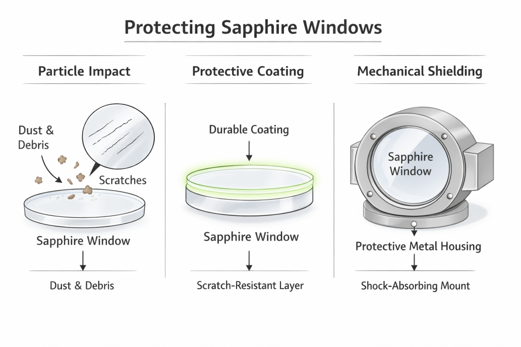 Protecting sapphire windows requires a combination of material engineering, mechanical design, environmental control, and operational procedures.